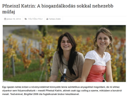 Egy igazán nehéz évben a növényvédelmet könnyebb lenne szintetikus anyagokkal megoldani, de mi ehhez olyankor sem folyamodhatunk – meséli Pfneiszl Katrin, akinek csak úgy csillog a szeme, miközben a borukról mesél. Testvérével, Birgittel 2006 óta foglalkoznak biobor készítésével.
